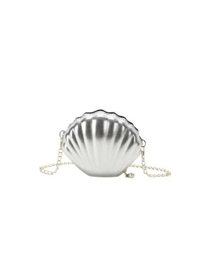 Women's Silver Seashell Shaped Clutch Bag - Silver - View 1