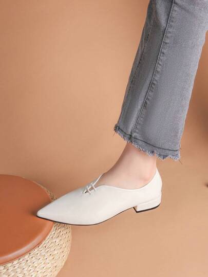 Women's Simple And Comfortable White Pointed Toe Flat Shoes - Beige - View 8