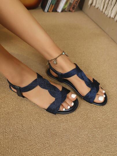 Women's Stylish Bohemian Flat Sandals For Spring/summer - Blue - View 1