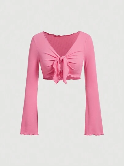 SHEIN MOD Women's Tie Front Top - Pink - View 1