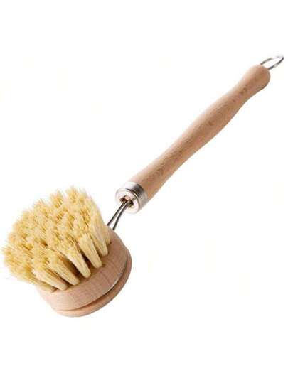 Wood Handled Dish Brush, Natural Kitchen Cleaning Brush Suitable For Vegetables, Pots, Pans And Dishware - Brown - View 1