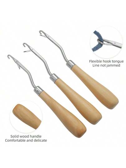 Wooden Bent Latch Hook Tool Crochet Needle For Micro Braids,Hair Extensions,Rug Making And Art Crafts - Brown - View 3