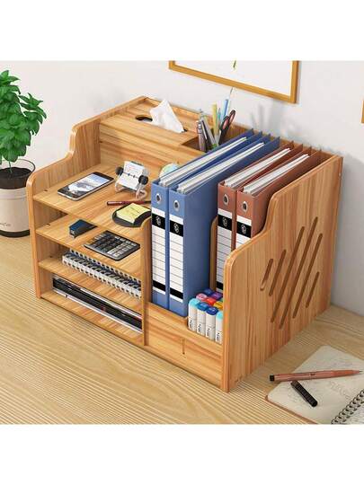 Wooden Office Desk Files Cabinet Pen Pencil Storage Holder Organizer Drawer - Yellow - View 1