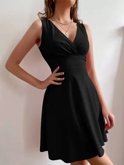 Wrap Detail Zip Back Dress - Black - View 1