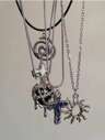 5PCS Vintage Fashion Leather Rope Star Pendant Necklace For Women Men Antique Silver Color Jewelry Accessories Y2k Aesthetic