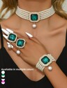 3pcs Fashionable & Elegant Rhinestone, Green Crystal Pendant Necklace & Earrings Set, Women Jewelry Set, Bridal Jewelry Set, Party, Christmas, New Year Gift