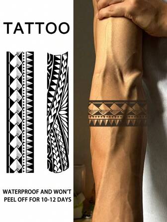1Pc Waves Stripe Temporary Tattoos Waterproof Sweatproof Last For 1-2 Weeks Realistic Herbal Juice Anti-Friction Non-Reflective Faux Black Fake Tattoos For Woman And Men Tattoo Stickers For Arm, Chest, Leg, Abdomen, Waist Modernist Body Art