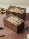 1pc Simple Double Layer Velvet Jewelry Storage Box, Desktop Dust-Proof Necklace, Bracelet, Earring And Accessories Organizer, Gift For Valentine's Day