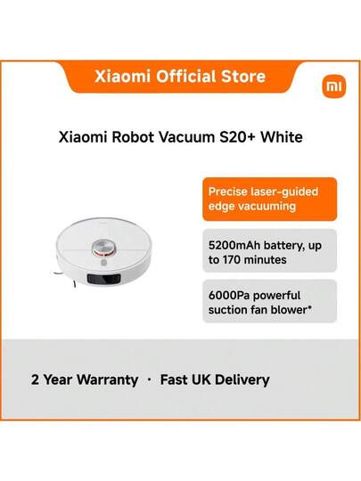 Xiaomi Robot Vacuum S20+ – Upgraded Smart 2-In-1 Vacuum & Mop With 5200mAh Battery, 55W Powerful Suction, Large Dust Tank, Slim 97mm Design, Auto Docking, Ideal For Pet Hair, Hard Floors & Carpets - White - View 1