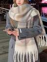 1 Piece Solid Color Casual And Elegant Party Business Polyester (Polyester) Faux Cashmere Warm Scarf With Tassels For Autumn And Winter, Soft And Warm For Dress