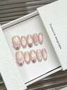 YADORNOS 10pcs Glitter Diamond Handmade Press On Nails, Autumn Winter Champagne French Nail Tips With Golden Shimmer, Flower Rhinestones, Pearls Fake Nails, Long Oval Pointed False Nails, With Jelly Glue And Nail File, Ideal For Weddings/Holiday Parties/Daily Wear
