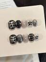 10pcs Gothic Cross Dark Retro Cool Handmade Acrylic Press-On Nails, Black Devil Wings With Red Embellishment, Long Stiletto Pointed Fake Nails, French Nail Tips, DIY Nail Art Supplies, Reusable, With Jelly Glue And Nail File, Rock Punk Party Music Festival