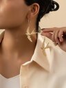 1 Pair Vintage Geometric Textured Asymmetric Flower & Leaf Design Earrings, Fashion Jewelry Gift For Women Valentines,Mom,Mother,Mother's Day,Gift