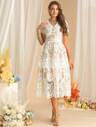 Lace Dress Female New Waist Mesh Summer A-Line Dress Elegant Long Sleeve Formal Evening Prom Wedding Guest Gown, For Graduation, Dinner Party Dress