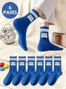 6pairs Brown Tone Solid Color Casual Mid-Calf Socks