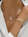 1pc Gold Y-Shaped Design Layered Necklace, Details Decorated With Rhinestones & Faux Pearl, Suitable For Daily Wear By Women, Friendship Gifts, Banquet Parties(Handmade Chain Cut To Size, Variable Number Of Pearls, Variable Size Of Rhinestones)