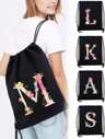 Drawstring Backpack Sports Backpack Women Drawstring Shoe Bags For Travel Storage Bags Rose Gold Initials Name Letter Pattern Gym Bags Lightweight Drawstring Bag Travel Bags Cloth Bags Dust Storage Pouch For Outdoor Duffle Sports Bag Schoolbag Bundle Tote Bag For Student Sports Back Pack Latter Print