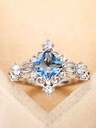 1pc Elegant Cubic Zirconia Teardrop Blue Diamond Ring, Women's Party, Formal, Daily Fashion Jewelry, Holiday Gift Choice