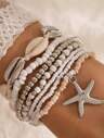 7pcs/Set European & American Style Metal Seashell Starfish Beaded Bracelet For Women, Silver Color, Summer Beach