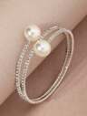 1pc Minimalist Crystal & Pearl Cuff Bangle, Party Dress Accessories