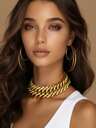 1pc Men's Oversized Faux Gold Chain Necklace, Hip Hop Prop Necklace, Exaggerated Thick Necklace