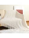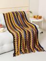 1pc Rectangular Checkered Woven Sofa Blanket, Casual Style Polyester Throw Blanket With Tassels, Suitable For Office Nap Or Daily Use