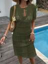 Maternity Knitted Cardigan Outer Jacket, Wear Over Maternity Dress, For Spring, Autumn, Summer Air-Conditioned Room, Solid Color Tied Long Sleeve Open Front Sweater, Minimalist, Office Wear, Retro, Simple, French Style, Women Front Waist Tie Solid Color Knit Cardigan, Can Wear Over Blouse, Extra Large Cute Cardigan