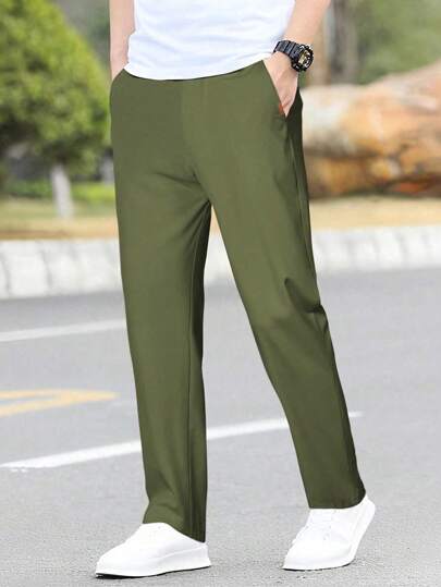 Manfinity Mode Men's Casual Solid Color Tapered Suit Pants Men Clothing Men Pants - Army Green - View 1