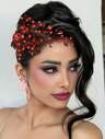 1pc Red Rhine Stone Headband, Elegant Rhinestone Flower Design, Suitable For Bride Wedding, Party, Birthday Decoration HP858-Red