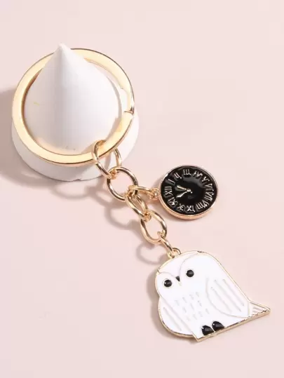 Zinc Alloy Oil Drip Design Cute Owl Watch Accessory Keychain - White - View 1