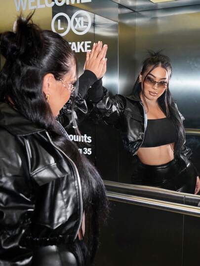 SHEIN SXY Zip Up Crop PU Leather Jacket - Black - View 1