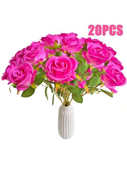 50pcs Artificial Red Rose, Fake Flowers, Suitable For DIY Wedding Bouquet, Table Decor, Bridal Shower, Valentine's Day Decoration