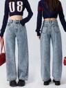 Teen Girl Casual Front Button Pocket Straight Leg Jeans