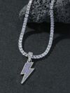 1pc Gold-Tone Stainless Steel Plated Cube Charm White Zirconia Pendant Necklace, Fashionable & Casual & Unisex & Unique Artistic, Great For Women & Men & Couples & Street-Style & Daily Outfit & Party & Festival Decoration