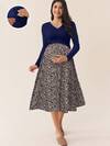 SHEIN Fall Clothes,Autumn Clothes,Maternity Autumn/Winter Clothes Maternity Solid Color Floral Print Splicing Nursing Dress, Autumn Maternity Dress Breastfeeding Dress Maternity Dress Blue Dress For Pregnant Woman Nursing Dresses Maternity Skirt