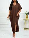 SHEIN Lady 2025 New Spring And Summer Casual Solid Color Woven Brown Notched Slit Batwing Sleeve Midi Tunic Dress Plus Size Dresses Vacation Outfits Woman Beach Outfits For Woman Beach Vacation Beach Dress Wedding Guest Dress Women Business Casual Woman Prom Dress,Holiday Outfits For Women Fall Clothes For Women Brown Maxi Dress Plus Size Brown Dress Caftan Dress Batwing Sleeve Dress Brown Elegant Dress Women