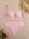 Swim Chiccia Women's Summer Vacation Beach Solid Color Textured Bandeau Bikini Set