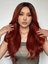 Fashion Butterfly Haircut 26 Inch Brown Gradation Curly Wavy Hair Wigs Synthetic Middle Part Hair Wigs For Women Girls Synthetic None Lace Wigs Music Festival