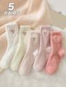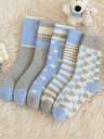 5 Pairs Random Delivery Mid-Calf Knitted Socks, Cozy
