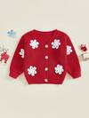 Baby Girl Lightweight Hollow Floral Knitted Button Down Long Sleeve Cardigan