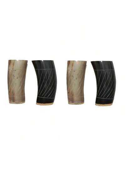 4-Piece Wooden Base Ceremony Viking Drinking Horn Glass 6 Inch Suitable For Ale Beer Wine - - Single Line - View 1