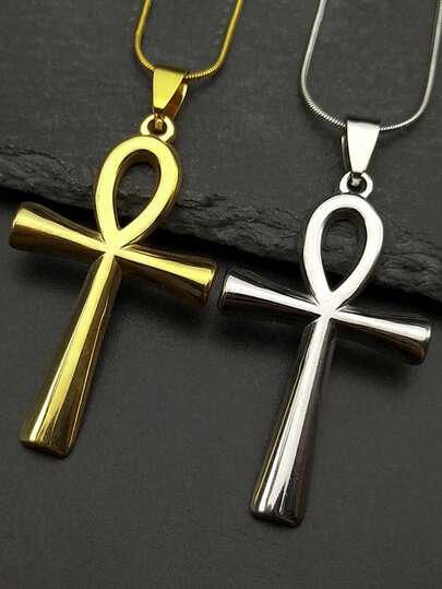 Egyptian Cross Ankh Key Of Life Pendant Necklace Stainless Steel Gold Color Amulet Religious Chain Necklaces Jewelry Gift - Necklace - View 1