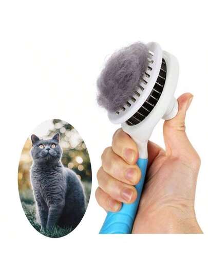 Cat Self Cleaning Slicker Brush, Pets Skin Friendly Grooming Brushes For Shedding Dogs Cats Hair Easy To Remove Loose Undercoat With Long Or Short Hairs Pet Massage Tool All Hair Type - UPGRADED - Blue - View 1