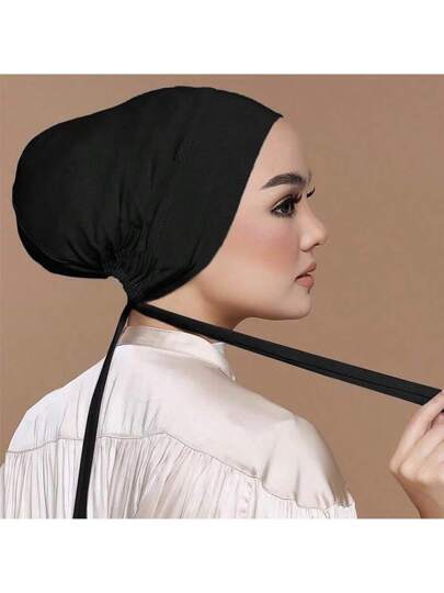 1pc Under Cap Women Hijab Solid Color Abaya Accessories Modal Headband With Elastic Cord And Adjustable Knot, Suitable For Daily Wear Women Veil - Black - View 1