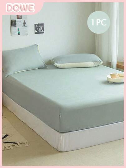 1pc Solid Color Fitted Sheet, Mattress Protector, Mattress Cover, Deep Pocket Design, Soft & Breathable, Fits Various Bed Sizes - Green - View 1
