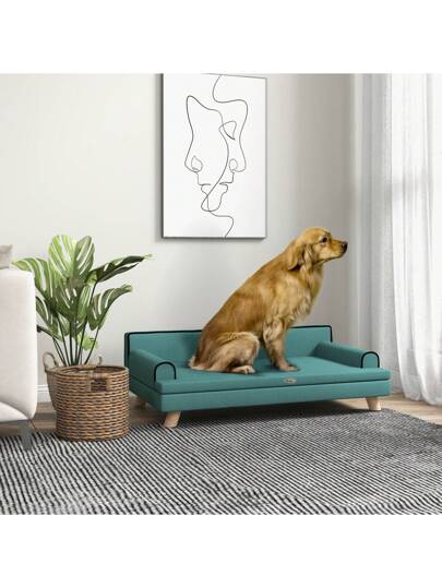 PawHut Dog Sofa With Legs Water-Resistant Fabric, Pet Chair Bed For Large, Medium Dogs, 100 X 62 X 32 Cm - Green - View 1