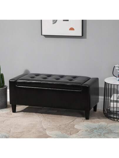 HOMCOM PU Leather Storage Ottoman Bench Storage Chest Tufted Ottoman Cube With Flipping Top 92L X 40W X 40H Cm Black Back To School Dormitory Storage - Black - View 1