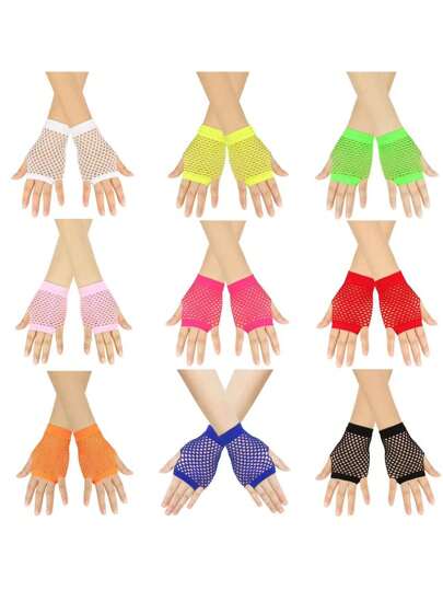 Solid Color High Elastic Fishnet Gloves, Short Hollow Out Fingerless Gloves, Punk Decorative Gloves For Party Nightclub Dance Performance - A - View 16