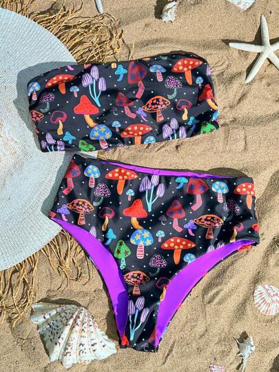 Laura Lessa designs e prints Women's Vacation Beach Mushroom Print Bikini Set, Halloween - Multicolor - View 1