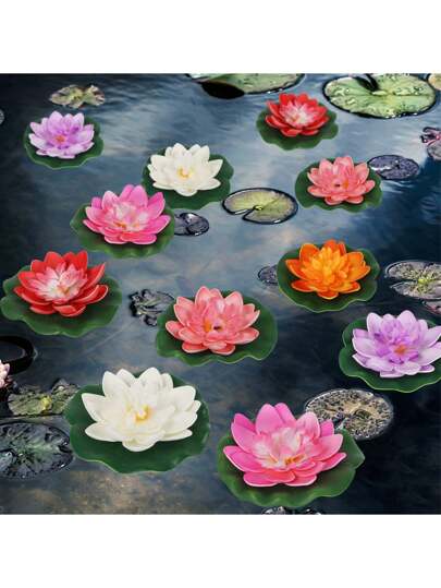 6PCS/12PCS Artificial Floating Foam Lotus With Water Lily Pad, Lifelike Ornanment Perfect For Home Garden Pond Decor Decorations Return Gifts - 6pcs - View 1